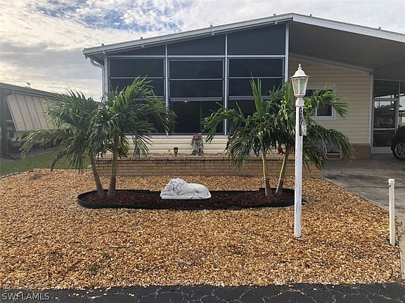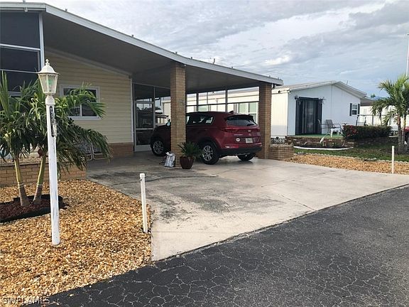 Come and see this Beautifully remolded home in the active 55+ community of Tamiami Village. This beautiful home features an open floor plan with laminate wood flooring. The open floor plan great, for entertaining. It has 2 bedrooms and 2 bathrooms. Primary bedroom with, ensuite bathroom. Florida room can be used year-round. Large, screened lanai is perfect for entertaining. There is a separate laundry room with storage and a storage unit in the backyard. Covered carport can be used by 2 vehicles. 2 Pets are allowed with a max weight of 25lbs. Pets must be current with vaccinations. 3 heated pools Hot tub Sauna 2 clubhouses 2 billiard rooms 2 shuffleboard courts Exercise room Library Meeting room Horseshoe Courts. Also, Dances Bingo Pancake Breakfasts Holiday Dinners Karaoke Trivia Games Quilting & Sewing Hooks & Needles Ice Cream Socials Strawberry Festival Horseshoe Pitching Team Village Golf Cart Parades Billiard Team Line Dancing Card Games Chair Volleyball Dart Baseball Saturday Morning Coffee & Donuts Shuffleboard Teams Golf Cart Runs Derby Races Spaghetti Dinners Exercise Groups. Don't wait come and see it. Start enjoying retirement in this active friendly community.