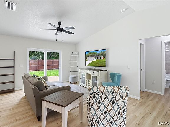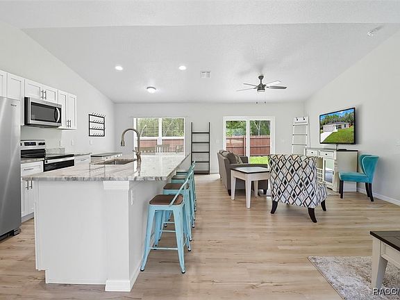 This stunning three-bedroom, two-bathroom home, built in 2024, offers contemporary design and modern comforts. The open-concept living space features high ceilings, large windows for natural light and sleek finishes throughout. The gourmet kitchen has stainless steel appliances, granite countertops, soft close cabinets and a spacious island for entertaining. The master bedroom includes a bathroom with double sink, walk-in shower and walk-in closet. Luxury vinyl flooring throughout the whole house. 2-car garage, indoor laundry room, LED lighting, Carrier energy efficient heat pump system. Backyard is completely fenced in. Nearby you will have the paved bike trails, Crystal River and Homosassa for the best Gulf fishing and boating, the clear waters of the Rainbow River in Dunnellon and the Tsala Apopka Chain of Lakes.