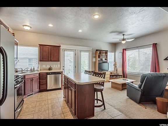 Don't miss your chance to own in the coveted Quarry Bend community! Make this beautiful two story row-end townhome your home. Features include high ceilings in entry and living room and a warm inviting fireplace. Upgrades include custom wood railings, gourmet kitchen cabinets, and stainless steel appliances. 2 car garage with great storage, well cared for. Open sitting porch across the front of the home, and a deck off the back-perfect for BBQing. Here are just a few of the amenities Quarry Bend has to offer: Swimming pool, hot tub, fitness center, playgrounds, paved walking trail, plus the community is pet-friendl There is a large room and kitchen you can reserve for a gathering. Easy access to schools, shopping, ski resorts, and freeway. This is a MUST SEE!