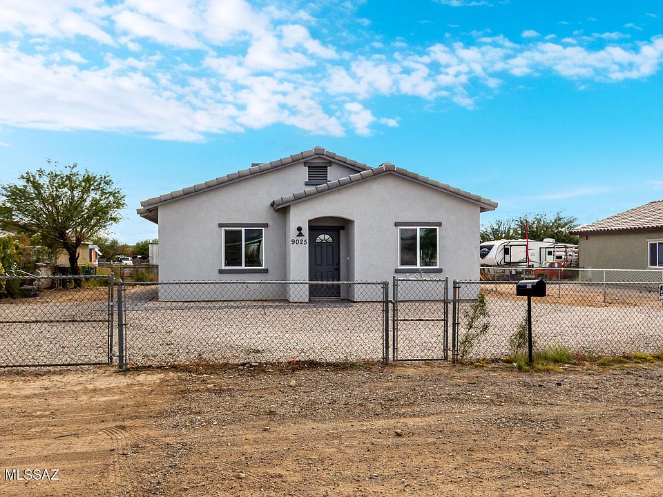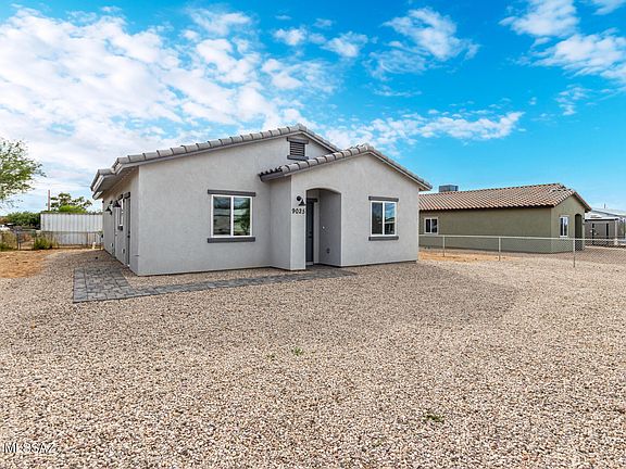 Welcome to this newly built home in Tucson, AZ! Discover an inviting open floor plan filled with abundant natural light, perfect for entertaining or casual gatherings. Thoughtful touches include wood-look tile flooring, fresh paint, and ceiling fans. Upscale kitchen comes with recessed lighting, crisp white cabinets, stainless steel appliances, a handy pantry, and sleek quartz counters. Sizable main bedroom ensures a good rest after a busy day, complete with a walk-in closet and a private bathroom, bringing convenience to your daily routine. The secondary bedrooms also provide sliding door closets for easy organization. Spacious backyard is a blank canvas, ready for your personal landscaping ideas. Hurry! This turn-key gem is the one you've been looking for!