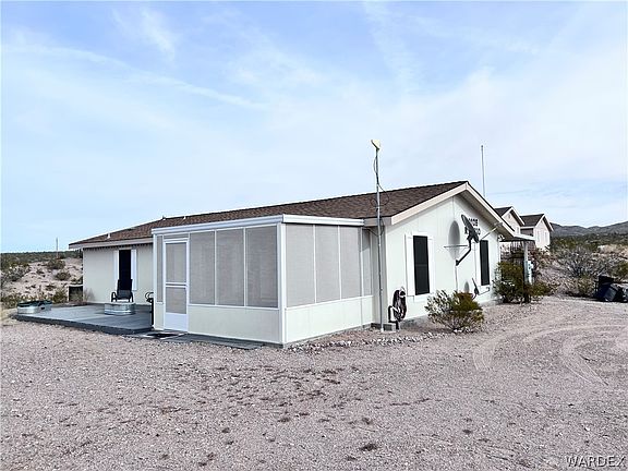 BACKUP OFFERS will be considered for this Beautiful manufactured home, nestled in the Equestrian community of White Hills. The irregular and elevated acre allows for panoramic views, a view of Mt Charleston and the city lights of Boulder City! A quick commute to either Kingman Az, Boulder City NV, Henderson and Las Vegas. A little over an hour to downtown Las Vegas and McCarren airport, and approximately an hour to Laughlin Nv. Rural Arizona will provide you with serenity and tranquility, perfect weekend or full time home away from the bustle of the city. New mini marts and dining are within a few miles of your new home. This delightful home is well maintained, and new features have been added. There is an screened in sunroom, covered carport, a sunny well appointed kitchen with breakfast bar and casual dining, some shade screens, in house laundry, large master suite with walk in closet. 2 spacious guest bedrooms, and a full guest bath. Open living room, features a new sliding door out to the open deck facing Mt. Charleston. Entier exterior of home has been painted and sealed. Relax and breathe the fresh air and view the stars through the crystal clear skies. Recreational activities abound, such as ATV riding, equestrian, pursuits, gardening, hiking, exploring local history and prospecting. The property is serviced by a local co-op water company, public power company, and propane delivery. Buyer to verify zoning, HOA, utilities and room dimensions are approximate.