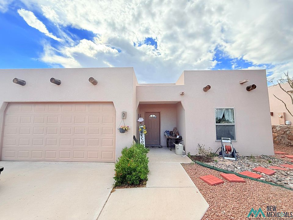This beautiful 3 bed 2 bath southwestern style home is located in Truth or Consequences. Features include an open floor plan with refrigerated air, high ceilings, skylights throughout and a gas fireplace in the living room. The spacious kitchen has plenty of counter and cabinet space along with stainless steel appliances. The master suite offers a walk-in closet, the bath boasts a separate shower, double sinks and a large garden tub. Tile and carpet flooring flow throughout the home. The 2-car garage is great for covered parking or additional storage. In the beautifully landscaped backyard you will find a covered porch perfectly positioned to enjoy the wonderful NM sunsets, fruit bearing trees, a storage shed along with grass and stone to finish off a great place to relax and entertain people. This is a must see!