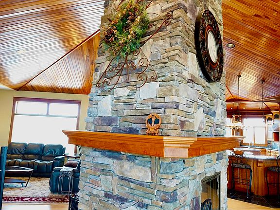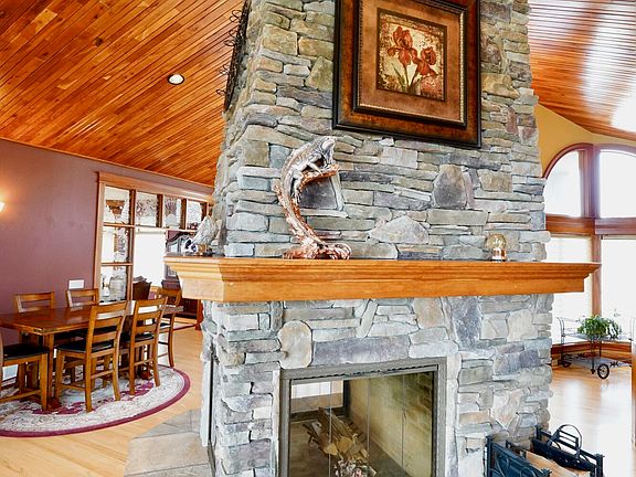 - Description: 1400 sq ft with 3-sided stone fireplace.