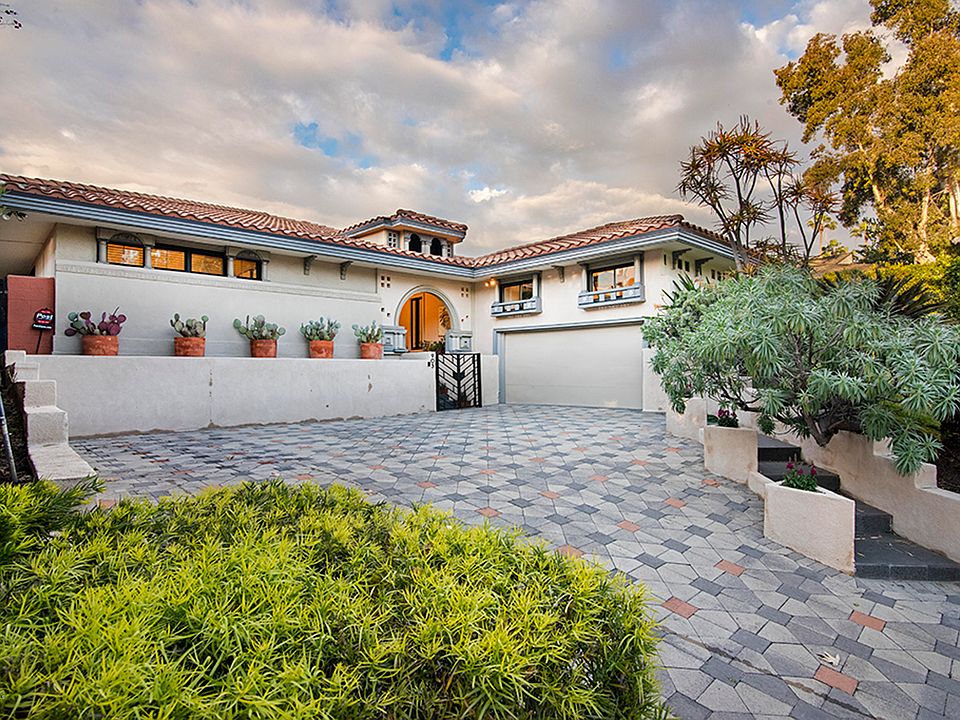 Special Mediterranean Home on Prestigious Street in a neighborhood of outstanding custom homes near shops, restaurants, and convenient transportation access. This inviting 4-bedroom home, with its flowing floor plan, provides desirable privacy and comfort to all family members. In addition, it has a separate office wing which has a full bath and could be perfect for extended family or guests. The current owner is an architect and an artist. He has carefully updated and enlarged the home with special architectural features beginning with the uniquely paved drive and front coppola with Mediterranean highlights. Inside is a large step-down living room complete with French doors to a private rear patio and garden. An inviting family room (also large) leads to a delightful sunroom. Both the dining room and kitchen (updated) are spacious and open-- perfect for entertaining. Bathrooms are attractively upgraded.