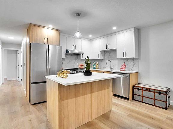 Welcome to this beautifully renovated bi-level half duplex in the desirable community of Queensland SE, Calgary! Perfectly located close to major roads, Fish Creek Provincial Park, schools, and playgrounds, this home offers over 952 SQFT of thoughtfully designed living space, featuring 5 bedrooms, 2 bathrooms, and a huge backyard. Step inside to a bright and spacious foyer with a convenient closet. The stunning modern kitchen boasts a central island, stainless steel appliances, and an open layout overlooking the dining and living areas. Large windows in the living room flood the space with natural light, creating a warm and inviting atmosphere. A stylish 4-piece bathroom, in-suite laundry with stacked washer/dryer, and three generously sized bedrooms complete the main level. The fully finished basement (illegal suite) with a separate entrance, offering two bedrooms, a full bathroom, and a comfortable recreation area—perfect for extended family or guests. Enjoy the outdoors in your fully fenced backyard, ideal for summer barbecues, gardening, or simply relaxing in the sun. Don’t miss your chance to make this move-in ready home yours—book your showing today!