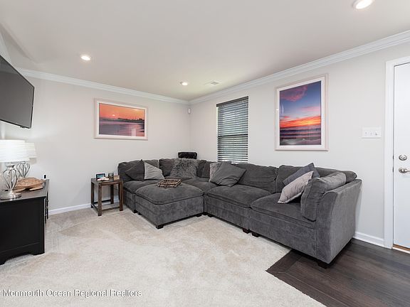 Welcome Home to this beautiful tri-level townhome that is a Commuter's Dream! Lower level offers roomy family room/den area, half bath with direct entry into the two car garage. Head up to the second floor to an open floor concept. Kitchen boasts white cabinets, large center island, granite countertops and stainless steel appliances with dining room area & sliding doors that opens to a quaint deck area, large living room w/crown molding also located on second floor. Upper level has primary suite w/9 foot tray ceiling, walk-in closet & full bath w/double vanity. Two additional bedrooms, full bath & laundry room complete this beautiful home! Access to boardwalk, beach, park & playground. Close to all, major highways, train, downtown shops and restaurants and the Jersey Shore. FERRY to New York City COMING SOON!! This is one of New Jersey's fastest growing communities! OPEN HOUSE CANCELLED TODAY 6/18