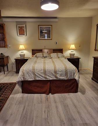 Fully furnished home in Downtown Albuquerque in a private and fenced compound. This is a Santa Fe style home with high end vintage mid-century new furniture. This includes the butcher block table with 2 old hickory chairs, and all the other furniture inside. This home has a full kitchen with all the utilities you will need, like a gas stove and dishwasher. The kitchen also includes mid-century style dishes, glassware, pots, pans and all the other utensils you will need in a kitchen. This home also has a nice backward with a gazebo , table and chairs. All of the utilities, internet, and satellite tv come included with the rent. This is a very nice home and since it is located in Downtown Albuquerque, it is minutes away from all the major hospitals including Lovelace, Presbyterian, and UNMH. It is also close to I-40 and I-25 giving quick access to things like Sandia Labs and many other places. This home is available to rent short term with a 90 day minimum or long term with no maximum.