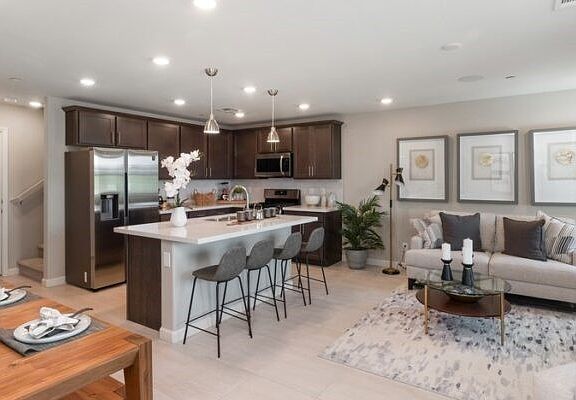 New and beautiful two story 3 bedroom townhome in the highly desirable Cadence community. The master plan community has all the resort style amenities to enjoy. Step inside and you’ll immediately feel the openness of the home. The kitchen, boasts a roomy island and pantry. The great room is very open and bright. The upstairs primary bedroom on this home has a step-in shower and double vanity with beautiful cabinetry and a large walk in closet! The second story also holds the two secondary bedrooms and laundry room for convenience. This home includes many energy savings features. Come see today! Photos are of model.