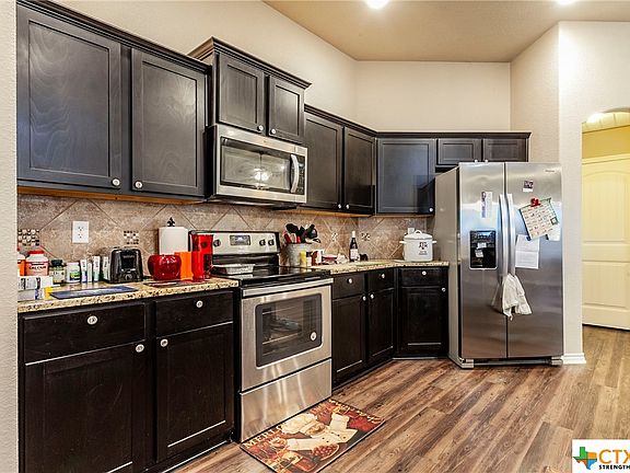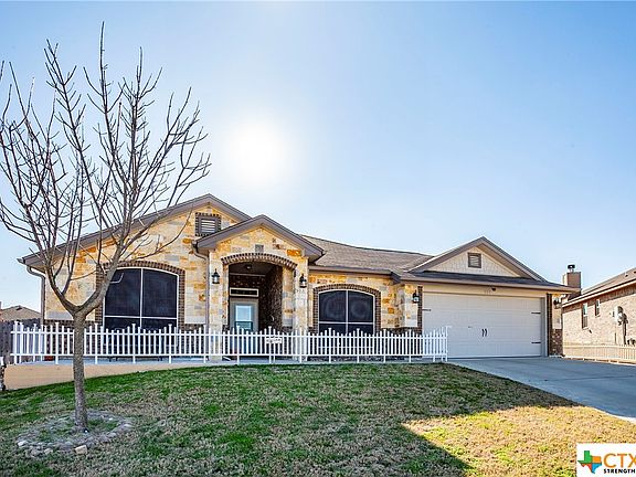 Welcome to this spacious five-bedroom, three-bathroom home spanning over 2400 sq. ft. Nestled on a large lot, this property boasts an open concept layout featuring a cozy living room with a woodburning fireplace and cable -electric hookups above the mantle. The kitchen is a chef's dream with granite countertops, a walk-in pantry, custom cabinetry, a bar with a sink and dishwasher facing the living room, stainless steel appliances, and LED lighting. The master suite offers a luxurious retreat with a garden tub, separate shower, and a large walk-in closet. Outside, the fenced yard includes an automatic sprinkler system, while the screened-in back patio provides a relaxing oasis. Additional concrete space for storage & a charming sitting area with white picket fencing enhance the exterior. Conveniently located near shopping and amenities, this home blends comfort and style seamlessly.