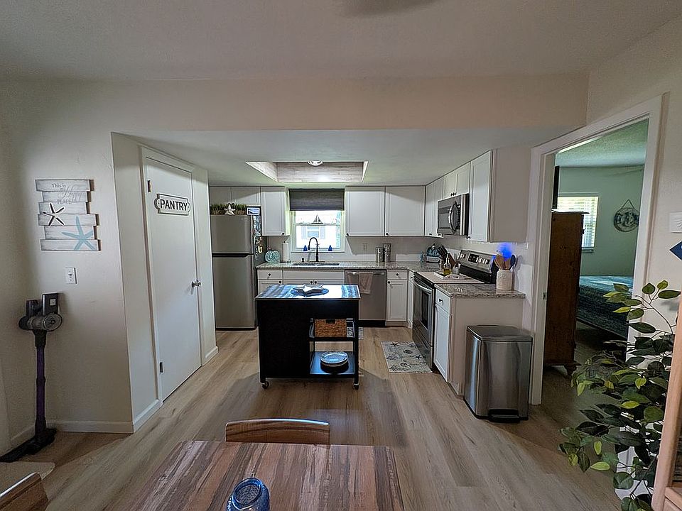 New kitchen with granite countertops, new appliances, new sink, new fixtures,new 100% vinyl flooring,remodeled bathrooms, 2" blinds in every window, new windows 2024, new roof 2023, new hurricane rated shed 2024, so everything but the water heater which work well make no noises and is a 50 gallon water heater.