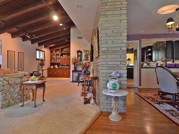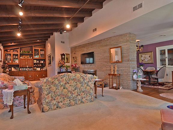 Spacious California ranch home situated in a quiet neighborhood with mature trees offering 1500sf, 2-3 bed, 1 bath, formal dining room, kitchen with breakfast bar and detached one car garage. Huge living room featuring wood fireplace, wood plank vaulted ceilings, wood fireplace with stone surround wall. Bonus room currently used as family room but can be converted to 3rd bedroom.