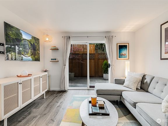 Welcome to your urban oasis! This bright, modern loft-style condo is turnkey and ready for you to move right in. Enjoy the chic, all-new laminate flooring and a fully updated interior. The main floor boasts a brand-new kitchen with sleek quartz counters, an eat-in bar, stainless steel appliances, a deep sink, and plenty of cabinets. The open living area flows seamlessly to your private fenced patio, perfect for relaxing. Upstairs, discover a cozy bedroom, an updated bath with a luxurious soaker tub, and in-unit laundry. Secure garage parking. This well-managed community is located right on the Interurban Trail, next to Bitter Lake, and right on the bus line. The perfect home for vibrant modern living!