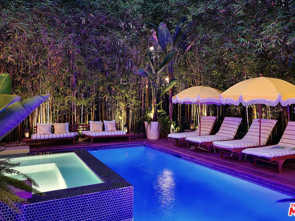 Prepare to be mesmerized. Welcome to Secret Garden Weho, a walker's paradise just minutes from 6 Michelin-Starred restaurants, neighborhood parks, recreation centers, and local markets - yet it feels a world apart. Here, every space blurs the line between home and haven. Discover spectacular indoor and outdoor living, including a panoramic rooftop deck, in a bright, canopied, Moorish-inspired sanctuary where architecture and nature dissolve into a Zen California dream. Your journey begins the moment you step through a massive driftwood door into a lush courtyard of beautiful tiled floors and inviting seating areas - a serene prelude to what lies within. This isn't just a home; it's your own Secret Garden, enveloped by olive trees, silver sheens, fern trees, and exotic flora. Positioned on a privileged corner lot, the property offers rare privacy and effortless freedom to entertain amid the city's vibrant pulse. Spanning over 3,000 square feet of total indoor-outdoor living space (~2,450 sqft indoor), the residence unfolds on a single level, perfectly balancing openness and intimacy. Expansive terraces and wraparound decks flow almost entirely around the home, drawing the vibrant greenery inside and creating a dreamy, seamless indoor-outdoor lifestyle. At its heart lies a grand, open-concept living area designed for both lively gatherings and quiet reflection, centered around a chef's kitchen with a generous island, peninsula bar, and a stunning skylight that floods the space with natural light. Two primary suites, two guest bedrooms, and a versatile room with dual-access bath and outdoor deck (currently serving as an executive office with water views and an adorable nursery) offer calming vistas of gardens and greenery from every corner. Step beyond, and the magic deepens. The backyard reveals a private, sparkling pool and spa nestled among groves of bamboo -- your very own resort retreat. You'll feel transported thousands of miles away to your own slice of paradise, where time slows and the air feels lighter. Adjacent, a spacious entertaining area awaits, perfect for unforgettable al-fresco dinners. For added comfort, a detached pool house includes a full bath for guests and an infrared sauna to unwind after the day's adventures. Finally, ascend a spiral staircase through the canopy to discover the crown jewel -- a private rooftop deck that seems to lift this Secret Garden into the sky. Shielded by lush landscaping, it offers complete privacy and panoramic views of the Hollywood skyline, the Hollywood Sign, and the surrounding hills. Whether you're soaking up the California sun or stepping away from the home office for a midday burst of inspiration, this rooftop haven is your personal sanctuary above the city. An incredibly rare offering just moments from the heart of West Hollywood, Secret Garden Weho is more than a home - it's a feeling. Are you ready to escape into your Secret Garden?