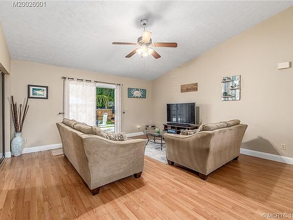 Charming 2/2 home in the desirable Palm Lake community. Light and bright throughout this home with all NEW Impact windows and spacious, open floorplan. Feel the breeze as you open the French doors leading from the living room to a quiet, shaded patio, huge fenced yard with room for a pool. NO HOA! Located in a quiet neighborhood. Just minutes from Downtown Stuart. Close to shopping, dining, parks, & easy access to US 1. Zoned for Martin County "A" rated school district.