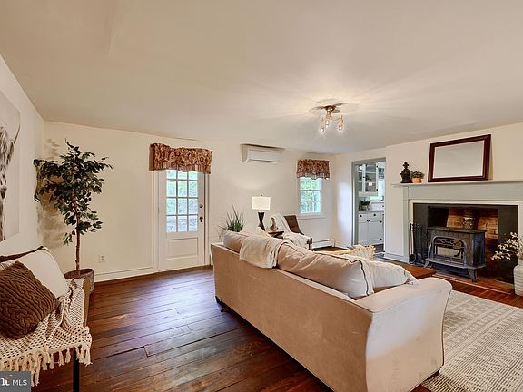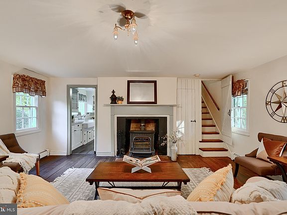 The Norris-Stirling House was built in 3 sections during the years 1804, 1840, and 1934. It has been beautifully maintained and preserved over the years. The home consists of a large slate covered porch, 4 bedrooms, 2.5 baths, a sleeping porch/balcony off the second level, 3 fireplaces (1 with wood insert), remodeled kitchen, living room, dining room and laundry on main level, finished attic, and cellar.  There are 45.55 acres of land in AG – half woods and half fields. Approximately 22 aces of the land are pastures, hay fields, and riding areas with riding trails connecting into trails along Winters Run Stream. The property is currently being used for horses and goats along with flower/vegetable gardens and grape vines. There is a 3 car detached garage with a 5 year old cedar shingle roof, 2 garage door openers and spot lights. The outbuildings include a large bank barn, run-in barn, and a 3 stall barn and tack room. The bank barn has newly installed tongue and groove pine floor and rafters, electric, and can hold farm equipment. The 3 stall horse barn has electric, water and a heat lamp. The original beams of the home have been reinforced and there is new blown-in insulation in the main house. There is upgraded 200 amp electric with a new box and Verizon Fios at the home. A concrete pad is in the rear yard with electric and water for a hot tub along with a swing set and garden patio. The property backs to Harford Glen and is on a preservation easement through the Maryland National Historic Trust. There are 5 building rights and the potential for AG preservation is available. All information should be confirmed through Harford County.