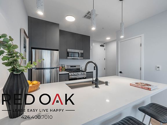 ~1 Month FREE~ Breathtaking Luxury Two Bedroom with Private Balcony, Stainless Steel Appliances, Rooftop Community Space with Panoramic Views, In Unit Washer/Dryer ~ In Prime LA! *Move-In Special* **Tenant will receive a one-time credit of 1 Month FREE off of the Market Rent Price of $3,700.00 on a 12 month lease term. The advertised price is based on the NET EFFECTIVE RENT. The net effective rent is shows the savings over the entire lease term.* Multiple Units Available ~ Ask About Availability ~ Pricing May Vary Based on Floor Plan and Availability ~ Unit comes UNFURNISHED Welcome to the Pinnacle of Luxury Living in the Heart of Los Angeles! Prepare to be amazed by KANVAS, a magnificent seven-story structure redefining luxury living. With a 24-hour state-of-the-art fitness center, a breathtaking rooftop lounge offering panoramic views, a rooftop pet park, outdoor BBQ area, bike storage room, touch-screen entry, and a convenient mail room, KANVAS sets a new standard of sophistication and comfort. Step into this exquisite two-bedroom sanctuary and be bathed in natural light streaming through expansive windows, highlighting the hardwood vinyl floors. Complete with Central Heat and Air, a Private Balcony with an incredible view, and contemporary finishes throughout, this home is crafted to delight your senses. Gastronomic Pleasures Await: Embark on a culinary journey in the kitchen, a haven boasting numerous hardwood cabinets and exquisite granite countertops. A versatile breakfast bar doubles as an island prep space, while state-of-the-art stainless steel appliances, including a gas range/oven, microwave, refrigerator, and dishwasher, elevate your culinary experience. Contemporary recessed lighting and stylish pendant fixtures set the perfect ambiance. Luxurious Bedroom Retreats: Retreat to the spacious bedrooms, each offering ample closet space and hardwood flooring exuding warmth. Large windows flood the rooms with natural light, creating a serene ambiance for relaxation. Indulgent Bathroom Escapes: Surrender to opulence in the bathrooms, featuring custom-tiled flooring, walk-in showers adorned with stunning backsplashes, oversized vanities with abundant storage, and generously lit mirrors, transforming them into sanctuaries of luxury and comfort. Laundry Made Easy: Bid farewell to laundromat hassles with the convenience of an in-unit washer and dryer, ensuring laundry day is a breeze. Parking Convenience: Enjoy one secure parking space for your personal vehicle for $150. Experience the Lap of Luxury in Los Angeles: Immerse yourself in the vibrant energy of LA, with an array of dining, shopping, and entertainment options just moments away. Enjoy the convenience of city living while relishing in the comforts of luxury at KANVAS. Elevate your lifestyle in this spacious haven. Available for an immediate move-in. LEASE TERMS: 15 Month Lease 12, 13, and 14 month leases available with varied pricing Pictures and descriptions are of a Model Unit Floor Plan and Details may vary Unit Comes UNFURNISHED Staged Photos to offer ideas for how to use the space. Square Footage is approximate. Showings may not be 1-on-1. Pet Refundable Deposit: $500 per pet Pet Rent: $50 per pet (2-Pet Max Limit) All information must be validated on Red Oaks Website since 3rd party websites can feed incorrect information. Red Oak does not warrant or represent that image renderings on this website are an accurate representation of every floor plan available at the Property. Floor plans may vary unit by unit and by location at the Property. Please contact the Leasing Office to schedule a tour of the Property and the particular unit you are interested in. Pricing and availability are subject to change at any time.