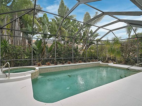 **IMPRESSIVE POOL/SPA HOME on a Desirable Corner Lot with Partial Water View** Custom-built by John Cannon and situated on an interior Cul De Sac in popular North Creek Estates, this 3-BED + Office/Den, 3 FULL BATH, 2-Car Garage residence affords wonderful privacy and features 2622sf of heated living area plus a spacious screened lanai with Heated Pool/Spa and ample covered seating area, for the utmost enjoyment of the Florida lifestyle. This Light and Bright, Open Floorplan entails premium features including crown moldings, tray ceilings, custom built-ins, gas fireplace, expansive kitchen with large island, hardwood cabinets, stainless steel appliances, etc. The spacious Owners’ Suite includes a Large, Walk-in Closet, and primary bath with dual vanities, soaking tub and custom-tiled shower. Recent Updated including NEW ROOF (2025), Appliances, Freshly Painted Interior, Carpet & Wood Flooring, etc. LOW HOA Fees. Residents enjoy a Prime Location with easy access to US41/Tamiami Trail -- close to area beaches including #1 rated Siesta Beach, shopping, dining, cultural attractions, and the highly rated Pine View School. **Please Enjoy Viewing the 3D VIRTUAL TOUR**