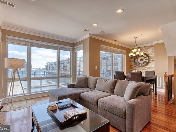 Waterfront living at its finest! This gorgeous and Fully Furnished 2 bedroom, 2 full-bath and 1 half-bath Pier Home with private elevator and two-car garage parking is located in the exclusive gated Harborview community on Baltimore's Inner Harbor. The home has everything you need and is move-in ready. It offers over 2,750 square feet of living space over five levels, three private waterfront balconies, and an incredible roof top deck with stunning panoramic harbor views. The open concept second level boasts tall ceilings, a large gourmet kitchen with stainless steel appliances, granite counters, gas cooking, an abundance of cabinet storage, and bar seating. The focal point of the combination living area/dining area is the magnificent unobstructed harbor view through the floor to ceiling windows , which is enhanced by the inviting gas fireplace accented by a beautiful stone wall and custom shelving. The second level also has a separated powder room. One floor up is the elegant primary suite with two oversized walk-in closets and a luxurious primary bath with double sink vanity, walk-in glass enclosed shower, and soaking tub. A laundry area is conveniently located off of the primary bedroom hall. The fourth level offers a spacious second bedroom and full bathroom off the hallway. There is a large second living room/ family room with water views, another water front balcony, and a wet bar. The exceptional rooftop terrace is the cherry on top with astonishing views of the Inner and Outer Harbor, the Baltimore skyline, the iconic Domino Sugar sign, Federal Hill, and Fourth of July fireworks. This home is complete with an oversized two-car garage with ample room for storage and an additional two-car parking pad. The community includes a host of community amenities and services: 24-7 security, an outdoor pool, private fitness center, private guest parking garage, onsite gate attendant, package acceptance, pristine landscaping, trash and snow removal, and more. Located on Baltimore's 'country club' side of the harbor, this home has direct access to the harbor promenade and is perfect for an evening stroll with easy access to restaurants and local shops. The Pier Homes Community is also ideally located close to Historic Federal Hill, I-95, BWI, Penn Station, I-83, and Baltimore's Downtown and Harbor East Business Districts. Schedule your appointment to see this furnished home today!