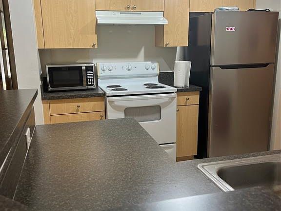 Very nice condo on the ground floor totally furnished with full size washer and dryer and a balcony.
