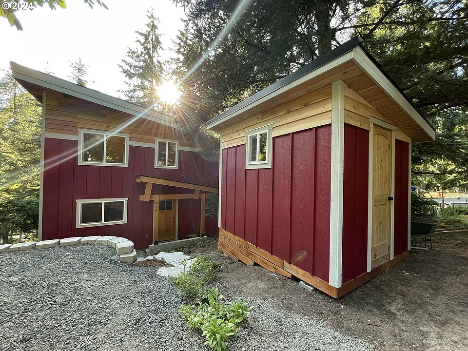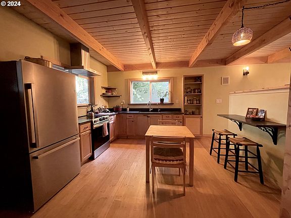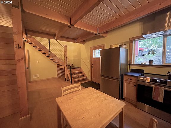 New beautiful home nestled in the trees. Minutes to Ridgeline and Amazon trail systems. Close to town, and surrounded by nature on a quiet dead end street. This cozy retreat features three bedrooms, two tile bathrooms, a sauna, soaking tub, exposed beams, bamboo hardwood floors, a 120 sq ft deck, a rain garden, granite countertops, RO water filtration, stainless steel appliances, and a ductless heating/ac system.