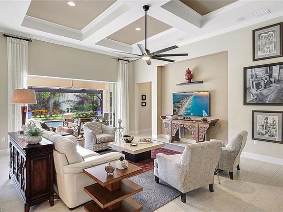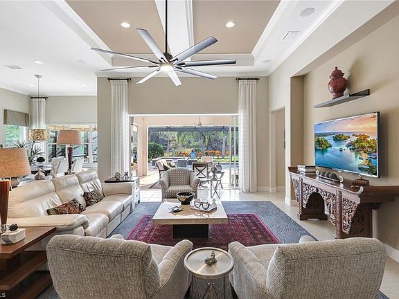 FOR A LIMITED TIME, GOLF MEMBERSHIPS AVAILABLE WITH NO WAITING. Welcome to this impeccable 3-bedroom plus den, 3-full-bath home (just under 2700 square feet) in the prestigious Quarry community which was Awarded Distinguished Club of America - Top 4% of all clubs worldwide. Boasting a 3-car, air-conditioned garage with a 4-foot extension and sleek epoxy flooring, this residence combines functionality with elegance. Freshly updated with a new roof and exterior paint in 2022, new carpeting in guest bedrooms, stunning tile-to-ceiling bathrooms with glass enclosures, plantation shutters, window treatments, crown molding, this home is move-in ready. The gourmet modern kitchen features newer stainless-steel appliances, perfect for culinary enthusiasts. Step outside to your private oasis, complete with an in-ground pool and spa, enhanced by custom outdoor lighting, an awning, and a picturesque window on the lanai, ideal for relaxing or entertaining. The storm smart electric shutters on the lanai provide peace of mind during inclement weather. Situated in The Quarry, this home grants access to a vibrant community lifestyle, including the newly renovated beach club with restaurant, tiki bar, resort pool, lap pool, wellness center, 5 lighted soft-surface tennis courts, 3 lighted bocce courts, 5 lighted pickleball courts, a tennis shop, and over 500 acres of lakes where residents enjoy boating and fishing. The full-time activities director will make sure a great time is had by all. In addition, various golf memberships are offered at the privately owned Quarry Golf Club. Designed by world-renowned architectural team of Dr. Michael Hurdzan and Dana Fry in 2007, this Par 72 championship golf course offers an exceptional golf experience with spectacular views. Water appears on every hole, and the course is a true test for golfers of all levels. With 5 sets of tees and a unique layout to every hole, you'll never get tired of challenging this course. Don’t miss this opportunity to own a meticulously maintained gem in Naples’ premier Golf and Beach community.