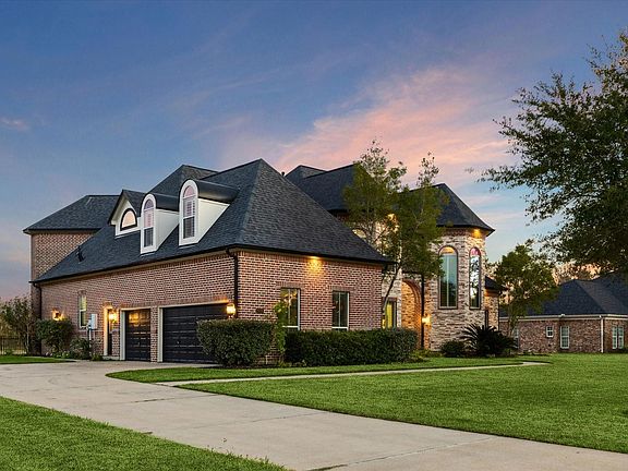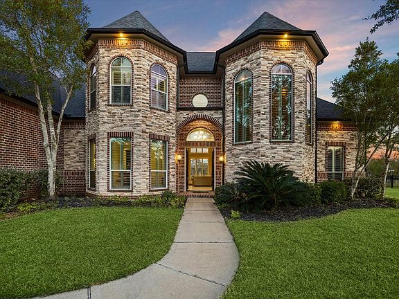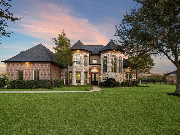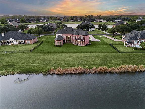 Welcome home to LAKEFRONT LUXURY in the prestigious ROYAL LAKES ESTATES of Richmond. This elegant 5-BEDROOM, 4.5-BATH home spans 5,006 SQ FT on an oversized 0.62-ACRE lot and features a NEW ROOF 2025, NO BACK NEIGHBORS, and a VERY LOW 1.568% TAX RATE. A GOURMET KITCHEN—with GRANITE COUNTERTOPS, DOUBLE OVENS, and a BUTLER’S PANTRY—opens to the FAMILY ROOM with LAKE VIEWS & FIREPLACE. A GRAND TWO-STORY FOYER with DUAL STAIRCASES leads to FORMAL LIVING & DINING areas filled with natural light. The MAIN-FLOOR PRIMARY SUITE offers a BAY-WINDOW SITTING AREA, SPA-STYLE BATH, and HIS & HER CLOSETS; upstairs features a private STUDY with BALCONY OVERLOOKING THE WATER and a spacious GAMEROOM. Outdoors, relax on a COVERED PATIO, FULLY-FENCED YARD, SPRINKLER SYSTEM, THREE-CAR GARAGE, and SCENIC WATERFRONT VIEWS—often with DEER at the shoreline. MINUTES FROM SUGAR LAND and zoned to A-RATED GEORGE RANCH HIGH SCHOOL, this home blends ELEGANCE, COMFORT & LIFESTYLE.