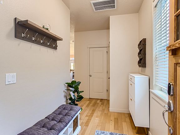 Welcome to your new home! Nestled on a quiet dead-end street next to forested greenspace and a community walking path, this corner-lot gem offers the perfect blend of tranquility and convenience. Step inside to discover tall ceilings, an inviting open floor plan, a gas-fireplace & abundance of windows, creating an airy atmosphere perfect for both relaxation and entertaining. The kitchen area features a sleek island with an eating counter, pantry for storage, and stainless steel appliances & gas range. Upstairs, four bedrooms await, each with impressively large deep closets with custom organizers. Don't miss the dedicated laundry room equipped with a washer, dryer & hanging rack/shelf with additional space to add storage or utilize existing rough-in plumbing for a future utility sink. Recent upgrades include a new 90% efficiency furnace, AC unit, and Nest Thermostat installed in 2021 and exterior paint in 2023.Enjoy your morning coffee & BBQ from the private deck off the dining room while the lower lounging patio beckons for leisurely afternoon gatherings with family and friends. Great schools, including the new Mountainside High School, and a wonderful community. Take advantage of this opportunity to purchase a home in the coveted Sexton Mountain neighborhood.