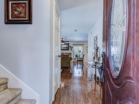 Beautiful Home w Upgrades Galore & Sparkling Inground Pool in Gated Sub. Solid Wood Floors in Living/Dining Rms. Top of Line Ceramic Tile in kitchen/Entry/Breakfast Rms. Upgraded light fixtures, Beautifully decorated, sec. system, gameroom up, master has sep. tub & shower w GIANT walk in closet, window shutters & decking w patio for entertaining. This is a must see home.