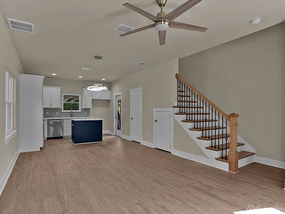 This charming brand new two-story patio home in downtown Greenwood is a must-see! Located just a block from the town square and Veterans Park, it boasts numerous upgrades, including quartz countertops, radiant barrier roof decking, and stylish rod iron spindles on the staircase. You'll appreciate the luxury vinyl planks throughout, along with a convenient stackable washer and dryer. The property features a fenced-in backyard, a decorative electric fireplace, and a tiled tub shower with a quartz vanity in the main bath. Upstairs, you'll find 40 oz carpet in the hallway and bedrooms. With energy-efficient double-hung tilt windows rated for 0.21 solar heat gain efficiency, this 2-bedroom, 1.5-bath home won't last long.