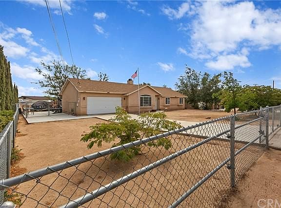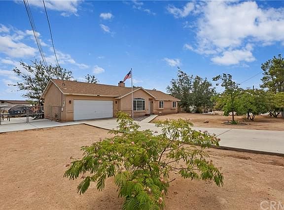 HUGE Lot 0.61 acres (26,500 sq ft lot) Stop renting and say hello to this beautiful single-family home situated in a family-friendly, quiet neighborhood of Hesperia. Step inside this lovely single-story property featuring 3 bedrooms and 2 bathrooms. Upon entry, you will be greeted by a nicely sized living room with vaulted ceilings and a fireplace great for entertaining or for those cozy winter nights. Down the hallway youll find your guest bedrooms and bathroom, along with the master bedroom having its own bathroom with plantation window shutters throughout the house. The kitchen has an amazing pantry for more storage. Step outside through the kitchen sliding door into a 16x20 concrete patio plus a HUGE backyard with a shed surrounded by new wooden fencing for added privacy. Park on your long driveway or in the attached two-car insulated garage with epoxy flooring and recessed lighting. There is an added bonus space in the garage adjacent to the laundry area. Access to the attic comes with a pull down ladder. The side driveway is ample enough for RV parking or bigger toys. Conveniently located near shopping centers and schools, making this home very desirable to live in. The opportunities are endless to make this your personalized home and is ready for you to make it your own!