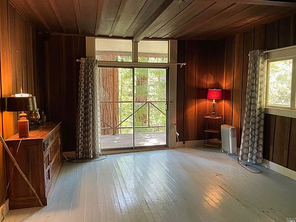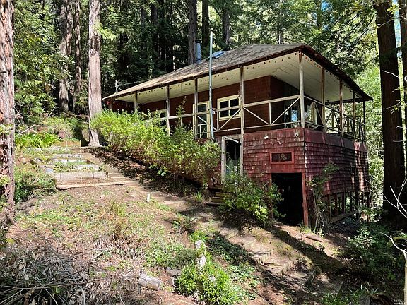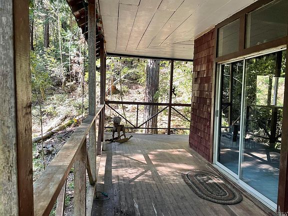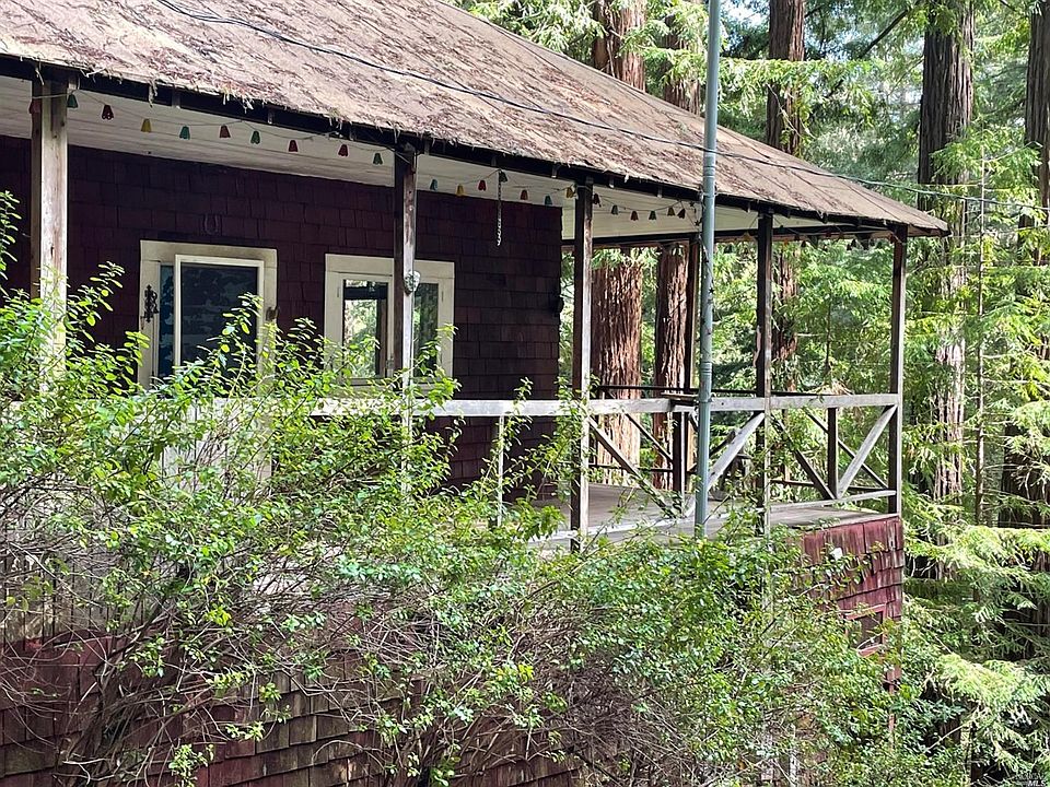 Escape from it all !! This old gem is waiting for its next owner to make her shine again. Lovely wrap around porch overlooking the private yard with many areas for lounging and endless garden space. The large deck platform sits high on the lot offering many possibilities. Beautiful vaulted ceiling in the living area and original wood finishes on the walls. Views out every window. Bedrooms are good size. Open kitchen with area for table and easy access out to the patio and terraced yard.