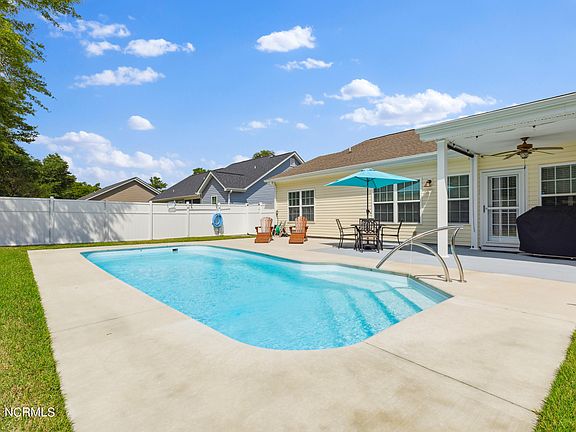 This home is the immaculate coastal paradise you have been dreaming of! Even better, the preferred lender is offering up to a $3,000 credit to approved buyers! With just two prior owners who have both taken such good care of the property, you won't believe your eyes. Many upgrades have been done over the years since built in 2014, but most notable is the entire in-ground pool installed within the last year which the owner spared no expense on. You will never want to leave this amazing backyard oasis, with ample room for entertaining all around the pool. The covered patio is complete with pull-down shades and a fan to comfortably enjoy watching sports and movies outdoors with friends or family. When you step inside, you are greeted with cathedral ceilings in the kitchen and living areas. The kitchen also features granite countertops, soft-close cabinets, and newer paint throughout the entire home. The spacious primary bedroom suite is located on the opposite side of the house from the other bedrooms for ideal privacy. The flooring is Sunset Oak Laminate Wood in the hall, dining room, living room, and bedrooms for easy maintenance. This home is also ideally located just 4 miles from Sunset Beach, 2 miles to the public boat ramp, and 0.25 miles to the Intracoastal waterway.