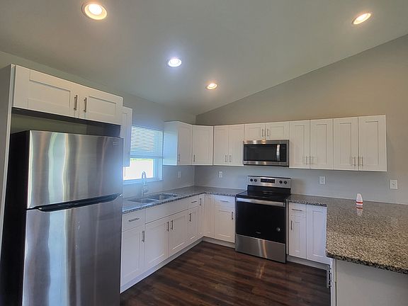 Extended countertop peninsulaNew interior paintTall cathedral ceilingsStainless steel appliancesLarge walk in pantry