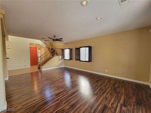 Highly upgraded 3 bedroom in Mountains Edge! Spacious living room w wood laminate flooring, wood shutters, downstairs den w custom shelving. Kitchen has corian counters, breakfast bar, pantry, ample cabinets for storage, tile floors & LED lighting under cabinets. Large primary suite overlooks Red Rock Mtns w/built in cabinets, 2 closets & stunning walk in shower. Ceiling fans thru out, loft w built in desk, laundry located upstairs. Backyard boasts covered patio, 2 custom firepits, fountain & cozy seating area. 1 year lease minimum. Restrictions: Non Smoking, pets considered case by case, no cats. Renters insurance & utility transfer mandatory before move in. Total Monthly Payment $2,445 ($2400/rent+ $20/trash + $25/sewer). All NWPM residents can enroll in the Resident Benefits Package (RBP) for $29.99/mo which includes HVAC air filter delivery, positive credit reporting w timely rent payments, $1M Identity Protection, move-in utility concierge service, rewards program & much more!