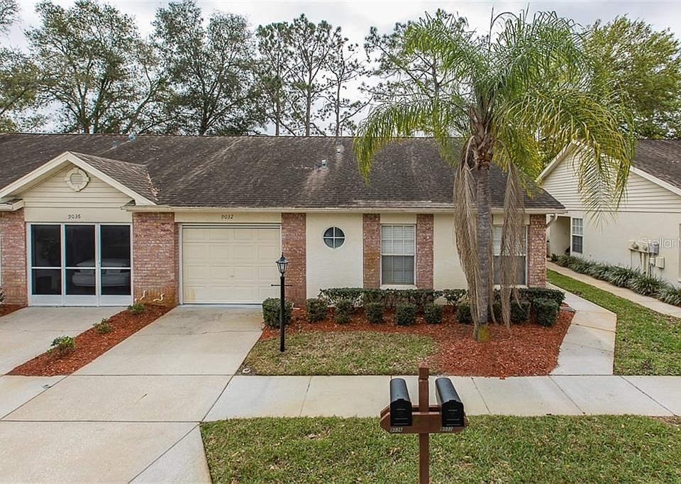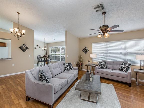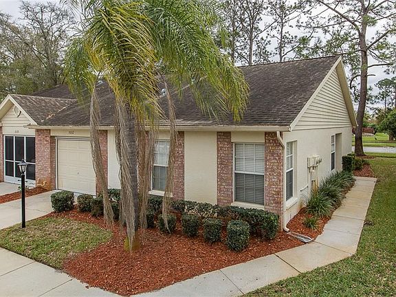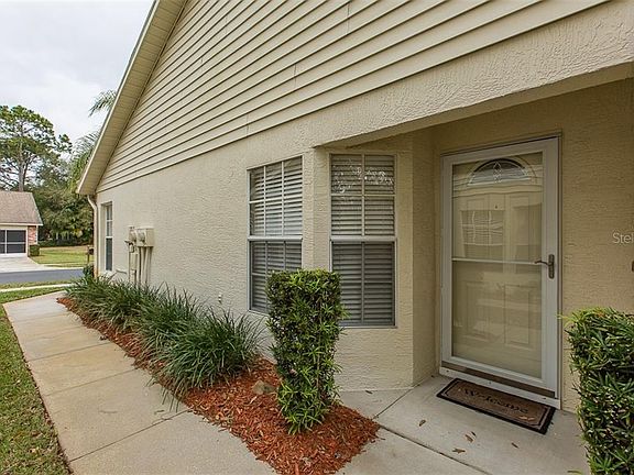 Welcome HOME. That's how the sellers feel when they come to Florida. Beautifully updated 2 bedroom, 2 bathrooms and a 1 car garage home in very popular community. meticulously maintained with soaring ceilings, versatile living space, open floor plan and an abundance of windows for great natural lighting. Lusciously landscaped views and lake with a fountain as you walk the community, lie at the pool or sit on the dock. Active community, recreational center with Tennis courts and Jacuzzi. Large eat in kitchen area with 16' ceramic tile, chandler and rear exit. The galley kitchen is perfectly portioned with closet pantry and garage access for easy unloading. The guest bath across from the second bedroom with beveled granite counter tops and custom framed mirror. Guest Bedroom has large closet taking up one wall of the bedroom. The master bedroom with en suite has his and hers walk in closets. The master bathroom has walk in shower custom framed beveled mirror. The large clean garage with a roll down screen houses the washer and dryer with laundry sink and storage shelves, AC and attic access. Close to a wonderful array of restaurants, shopping centers, easy access to State road 54, US 19 or the Suncoast. Near local beaches and many golf courses. The home is located at the front of the community so no winding all the way back to get home. Furnishings are available separate. Call to make this your home today as these units are very rarely available.
