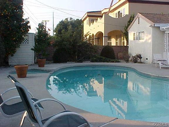 Northeast Downey pool home. Fireplace. Covered patio. 2 car garage with long driveway. Tile floors. Central air/heat. Fruit trees.