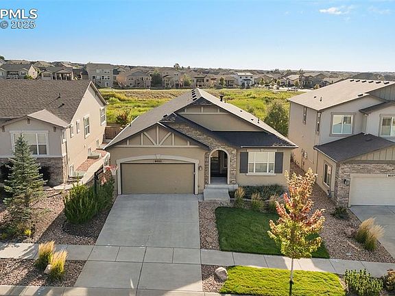 Welcome to this beautifully designed 4-bedroom, 3-bath ranch home in the highly sought-after Cordera community. Built in 2014, this 3,604 sq. ft. residence combines elegance and comfort with rich dark wood floors, open living spaces, and a finished lower level. Nestled on a quiet cul-de-sac and backing to open space, the home offers privacy and tranquility with mountain air and starry skies as your backdrop. The open-concept main level features a spacious great room with a cozy fireplace, a well-appointed kitchen with large island and walk-in pantry, and a dining area that flows seamlessly to the back patio. A private hot tub makes this space perfect for relaxing after a long day. The main-level primary suite includes a luxurious bath and walk-in closet, with an additional bedroom and a full bath nearby. The finished basement expands your options with a sprawling family room, 2 bedrooms, full bath, and generous storage. Cordera is one of Colorado Springs’ premier master-planned neighborhoods, known for parks, miles of trails, Wolf Lake for paddling and walking, and a private Recreation Center with The Cordera Community Center that includes a heated outdoor pool with a splash zone, a three-lane lap pool, a state-of-the-art fitness center with classes, multipurpose rooms, a kitchen, a Learn and Play room, and year-round events featured at the Grand Lawn. Families appreciate the award-winning Academy District 20 schools, including nearby elementary, middle, and high schools. Convenience is unmatched—minutes to shopping and dining at the Promenade Shops at Briargate, quick access to Powers and I-25, and close to major employers. Nearby healthcare includes UCHealth Memorial Hospital North and St. Francis Medical Center, adding peace of mind. With its cul-de-sac setting, open-space views, and a lifestyle centered on recreation, community, and convenience, 9033 Kennebec Pass Trail is more than a home—it’s the perfect Colorado lifestyle.