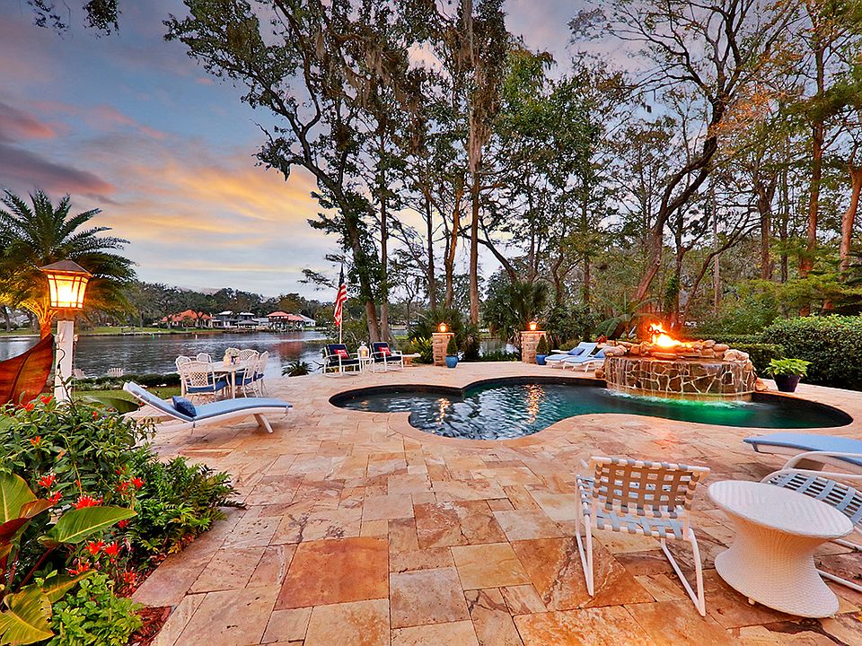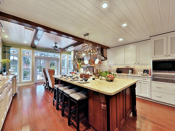 Beauty, functionality and livability blend together to create this fantastic Beauclerc waterfront home. Set amidst ancient oaks adorned with Spanish moss on Goodby's Lake, this gracious home invites you to sit and stay a while and enjoy the sunset. Built by the current owner's father, the quality of materials and thought put into this home are unrivaled. Award-winning 15'x30' Living Kitchen features expansive island, Wolf duel fuel double oven, microwave and warming drawers, Subzero built-in refrigerator, pull out refrigerated drawers in island, custom cabinetry and granite counters. Formal dining room has picture window view of lanai and river. Dining room leads to formal bar and two level living area with fireplace. Additional living room/piano parlor located by foyer. All four bedrooms