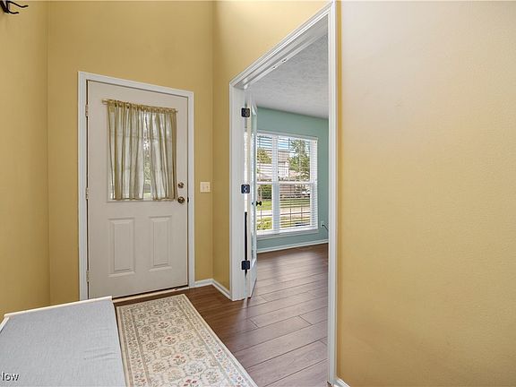 Welcome Home to this updated, 4 bedroom Olmsted Township Colonial! It is nestled in a cul de sac in not only in Woodgate Farms but in Harvest Village. When you walk in the front door, you’ll be amazed by the vaulted 2 story foyer and open floor plan! The formal office is off of the foyer and has glass french doors for privacy. The living room is open to the beautifully renovated eat in kitchen. You’ll fall in love with it the moment you see it! The classic white cabinetry, granite countertops, marble look subway tile with custom accent, black stainless steel appliances, undermount sink, black cabinet hardware, brushed nickel faucet and lighting. (2023) Laundry is conveniently located on the first floor and leads to the attached 2 car garage. It has plenty of storage and a professional epoxy like coating on the floor. (2018) The half bathroom is also on the first floor and has been renovated with new vanity, lighting, toilet and flooring. (2023). Upstairs you’ll find all 4 nice sized bedrooms with ample closet storage including the master suite. The upstairs full bathroom has been nicely updated with white vanity, granite countertops and lighting. (2023) The master suite offers everything you’ve dreamed of in this a spacious retreat! It has vaulted ceilings, a huge walk in closet, and refreshed bathroom with new LVP flooring, matte black faucets, dual shower heads, lighting and towel bars. (2025) The finished basement has a finished family room. It offers an opportunity for an additional office or perhaps a craft room. There is also a separate utility area. And, let's talk about the outdoor living! It is just gorgeous with a private, stamped concrete patio and wood fence. The community offers a clubhouse, pool and playground! This home has it all! You don't want to miss out!