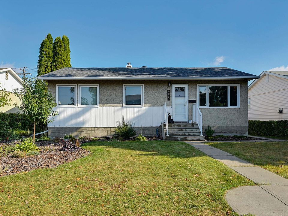 Discover this well-maintained bungalow featuring a legal basement suite, perfect for families, investors, or those seeking a mortgage helper. The main floor offers living room and kitchen, with new vinyl plank flooring, white cabinetry and a coffee bar. Three spacious bedrooms and a full bathroom complete the main floor. Side entry leads to shared laundry. The legal basement suite includes two bedrooms and a full bath. Enjoy peace of mind with new flooring, vinyl windows, newer shingles, a newer hot water tank, and a furnace serviced annually. The home is equipped with 100-amp electrical service and includes a detached single garage for added convenience. Ideally located near excellent schools, public transportation, river valley trails, and all major amenities, this property combines functionality, and an unbeatable location.