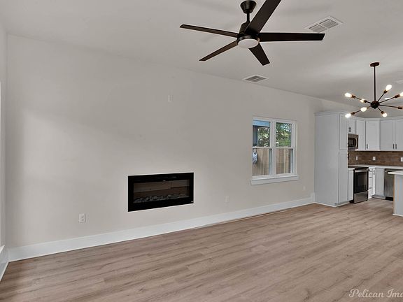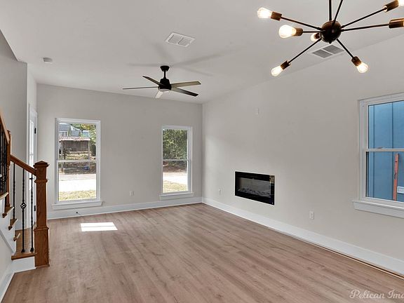 This charming brand new two-story patio home in downtown Greenwood is a must-see! Located just a block from the town square and Veterans Park, it boasts numerous upgrades, including quartz countertops, radiant barrier roof decking, and stylish rod iron spindles on the staircase. You'll appreciate the luxury vinyl planks throughout, along with a convenient stackable washer and dryer. The property features a fenced-in backyard, a decorative electric fireplace, and a tiled tub shower with a quartz vanity in the main bath. Upstairs, you'll find 40 oz carpet in the hallway and bedrooms. With energy-efficient double-hung tilt windows rated for 0.21 solar heat gain efficiency, this 2-bedroom, 1.5-bath home won't last long.