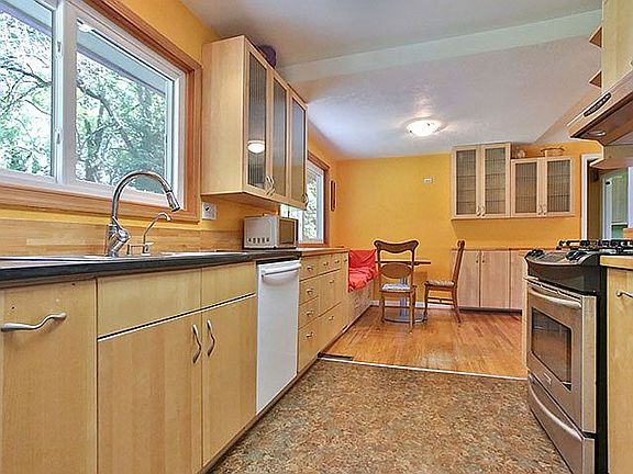 A lot has been done but there is more you can do to build equity. Single level home w/hardwd flrs in most rms, Updated kitchen w/butcher block & slate counter, stainless appl., gas cooking & lots of storage. Vaulted living rm, 3 nice sized br's, 1 full & 1 half bath. LG fam rm w/access to deck. LG mud room & utility rm. LG back deck overlooks the private 1/2 acre lot complete with green house, tool shed & Fanno Creek. Community Pool.