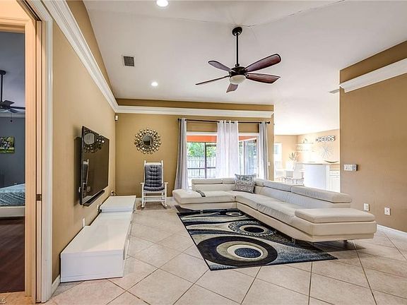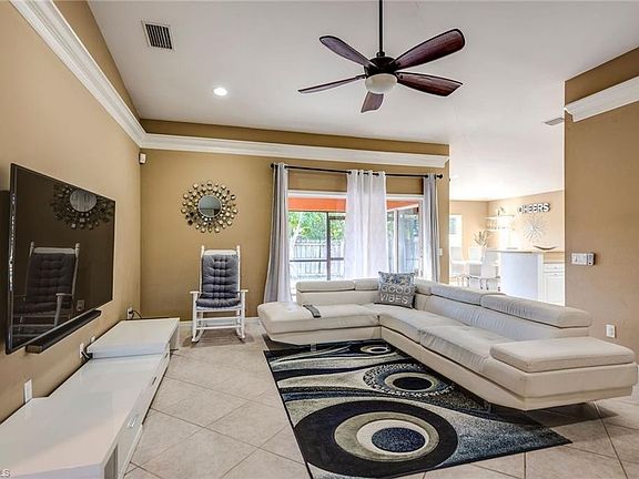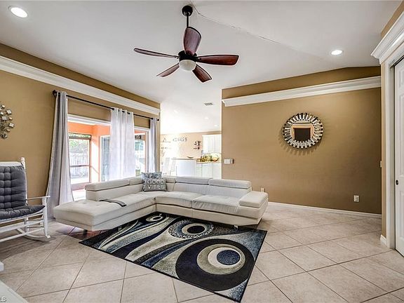 Experience what home feels like. Welcome family & friends right in to the beautiful open great room featuring vaulted ceilings finished by beautiful trim work & display niches. The clean, bright kitchen features an attractive neutral tile back splash to complement any decor while the cabinets are accented with crown molding and it opens to the main living area for exceptional entertaining experiences. Both bathrooms feature custom mirrors & gorgeous accent tile back splashes. Have kids, pets, or allergies? This home has no carpet! Diagonal tile throughout the living areas & wood in all 4 bedrooms. Tons of storage spaces throughout, huge laundry with storage, & large closets will give you plenty of space to stay neat & organized! Large under truss screened lanai AND additional uncovered patio area PLUS Fenced yard space gives you plenty of room and options to enjoy the amazing Florida lifestyle! Conveniently located in the heart of Fort Myers, with easy access to Alico Rd, Three Oaks Pkwy & I75, as well as US 41. Minutes away from the shopping/entertainment venues of Gulf Coast Town Center, Miramar Outlets, & Coconut Point! Whole Home RO System. Small Pet considered with deposit.