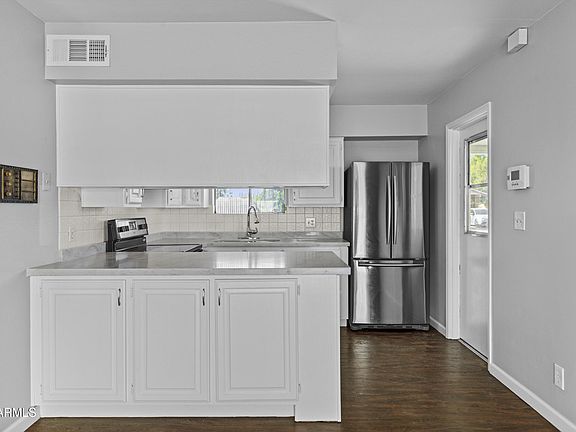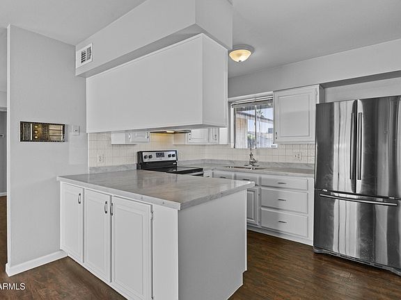 Beautiful 3 Bed/2 Bath Ranch near 51st and Olive in Glendale, AZ 85302! Freshly updated with new interior paint, wood grain vinyl flooring, and a modern kitchen boasting woodwind quartzite countertops and sleek stainless steel appliances. The primary suite shines with a large walk-in closet, new vanity, and a walk-in shower. Relax under the covered patio overlooking a spacious backyard with a new wooden fence. Shed for extra storage. Separate laundry - washer and dryer included. Ample parking with a carport seals the deal.