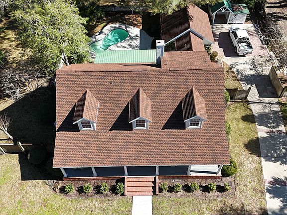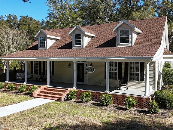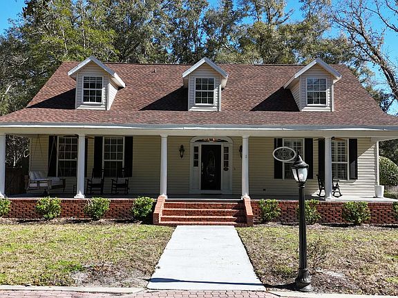 Welcome to this Cape Cod style single family home on one full acre with exceptional curb appeal and a classic design that's perfect for comfortable southern living. The front of the home features a covered front porch, a well-manicured yard and a paved brick driveway to add to the appeal. Inside you will find the first floor offering a central layout with a formal living and dining area, the kitchen, utility room, a half bath for guests and the spacious master bedroom with attached full bath. Once upstairs you will find the two remaining bedrooms with a full bath in between. Upon entering the backyard you will find an enclosed porch next to the inground pool perfect for relaxing or entertaining. The pool is surrounded by a spacious concrete patio with lush, mature landscaping offering a tranquil setting. This one is a Must See! Schedule your appointment today!