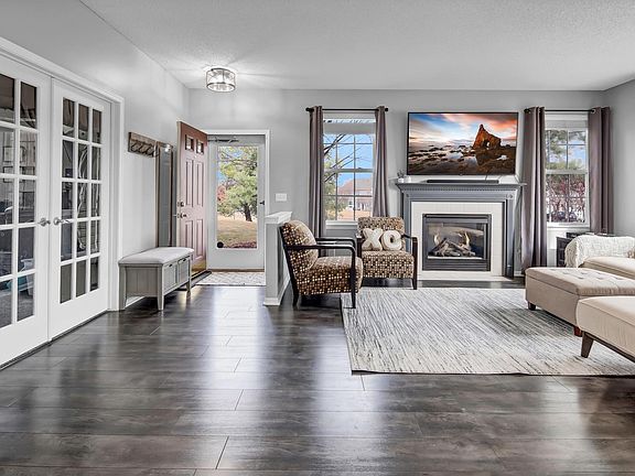 Wonderful end unit townhome loaded with updates! This end unit has a private entrance and no neighbors on the side. This townhome sits up on a hill and provides nice views overlooking the neighborhood. The main level is very warm and welcoming with a spacious living room with fireplace and french doors leading to a large office. Could be used as a den or room for guests. The kitchen/dining is an open concept and allows plenty of daylight with the large windows and patio door. All new flooring on the main level and fresh paint make this home move-in ready. The main level has a 1/2 bath right off the garage and also storage under the stairs. The upper level has a terrific primary suite with vaulted ceilings and large windows. But wait until you see the size of the primary bathroom and the walk-in closet! This is sure to impress! You also have an upper level laundry, another bedroom and 2nd full bath! Attached 2 stall garage and a nice size side yard to enjoy all summer. Must see!