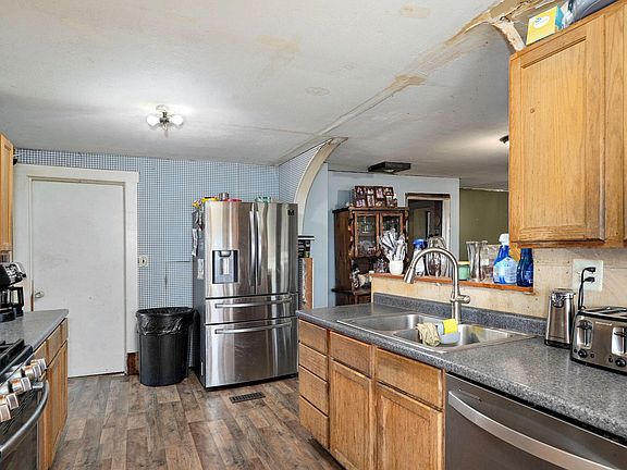 This home sits on 4.88 acres. Is over 1600 ft.. Features four bedrooms one bath. Three bedrooms down stairs, Possibly Two upstairs. Laundry on main floor. Kitchen has lots of cabinets and counter space. Nice Dinning room and a large living room. Large master bedroom. Very nice 60 x 40 barn/shop with concrete floors and electric. Also at one time had some Horse stalls. And still has a tack room. Great pasture, would make for a great mini-farm. Bring your livestock. Small pond as well. Home is being sold as is.