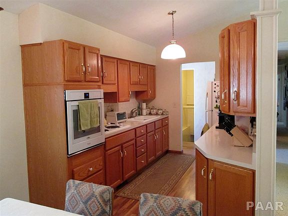 The street name says it all in this picturesque locale; beautiful, fantastic, serene area in far North Peoria. This cute ranch has vaulted great room/kitchen/dining room ceilings, a gas-log fireplace, large picture windows overlooking its wooded lot, main floor laundry, a master half bath, a walk-out basement w/ daylight windows, a 4th basement bedroom w/ en suite full bath and walk-in closet; approximately 1000 sq. ft. of unfinished basement sq. footage also with unlimited possibilities, a composite deck/patio & character galore and pocket doors.