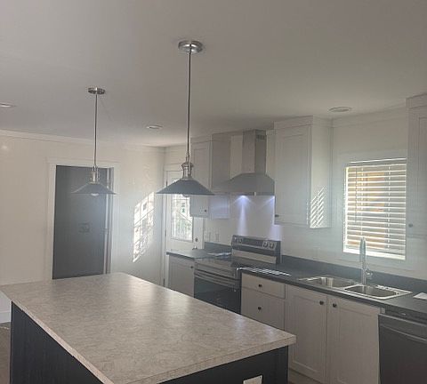 Front porchKitchen with islandRange hoodSmooth top stoveBlinds on all windowsStorage shed in yard