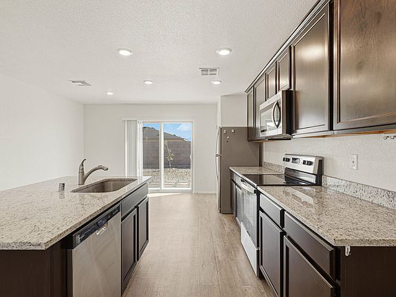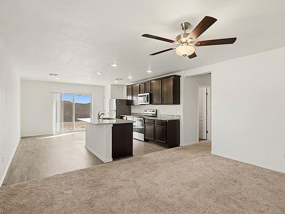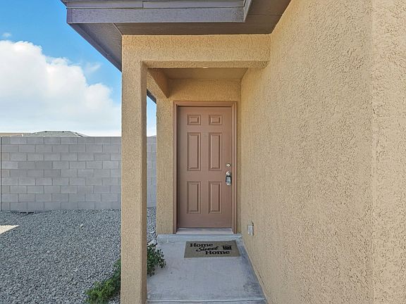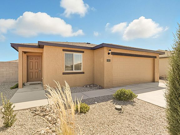 Welcome home to this nearly new property nestled on a large cul-de-sac lot in Belen. This beautifully maintained home offers easy living inside and out with a fully landscaped yard, a walled backyard, for privacy, and plenty of space for outdoor enjoyment. The backyard is a true retreat with raised flower beds, pavers, and fruit trees. A composter and rain gauge are also included for those who love to garden and grow.Inside, you'll find a welcoming layout with stylish finishes including granite countertops, stainless steel appliances, and rich mocha-colored cabinets that add warmth to the kitchen. 2'' blinds throughout add a polished touch, and the home's newer construction means you can move in with confidence. Don't miss your chance to make this charming Belen home your own!